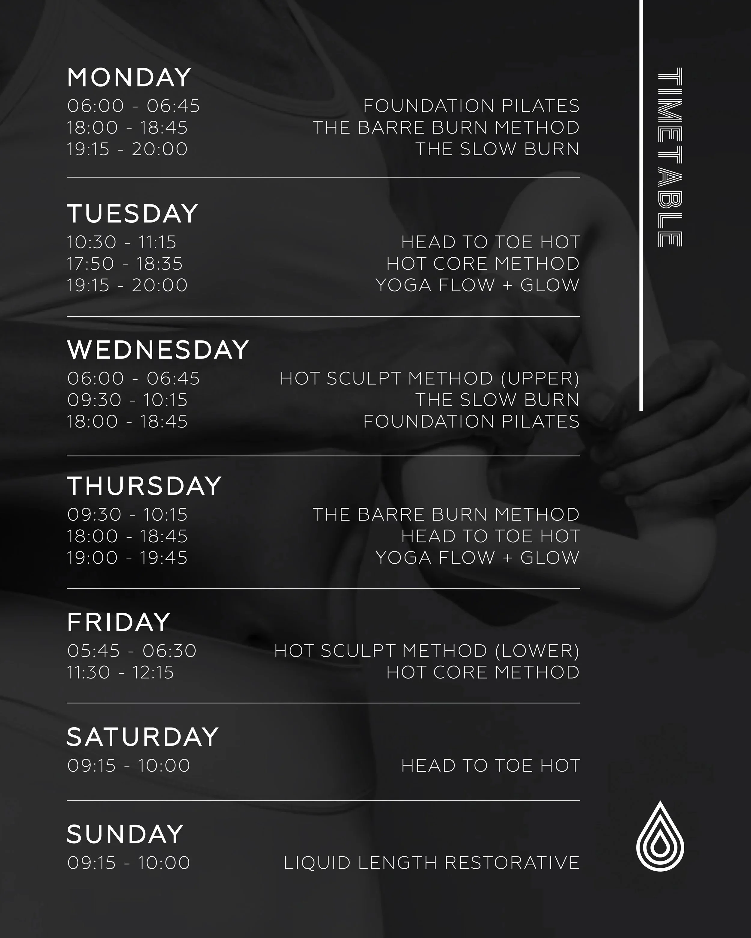 Explore our weekly class timetable and find sessions that fit seamlessly into your schedule. Whether you’re looking to build strength, improve flexibility, or slow things down with mindful movement, our online Pilates classes are designed to support your body at every level. Simply choose a class, log in, and move with us.